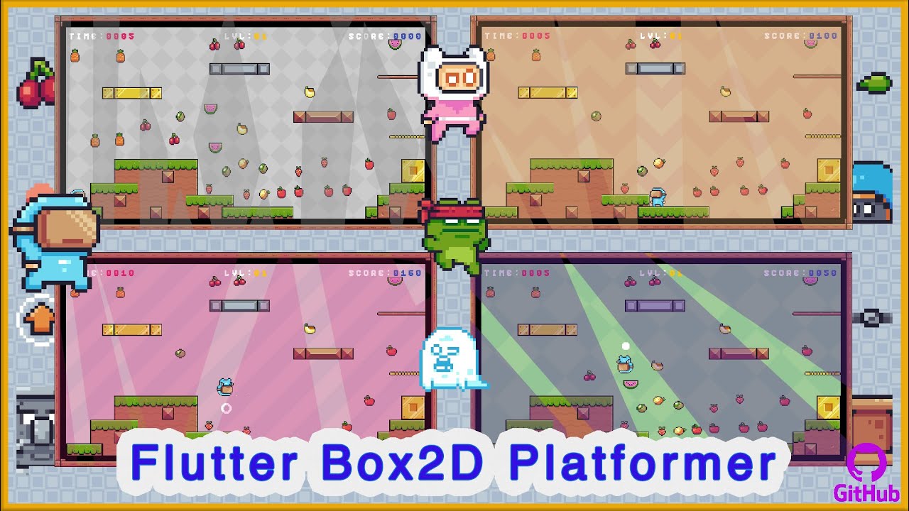Github Burakaybi Flutter 2d Game Project Templates are intended to give you a simple project structure on top of which you can build your game. they differ to accommodate different game types, from the simplest casual games through drag&drop board games to 2d platformers. In this tutorial, i will demonstrate how to use box2d to create an exciting and enjoyable platformer game. this will involve configuring gravity, controlling speed, creating physical bodies, and detecting collisions. The tutorial covers setting up the development environment, initializing the flame game engine, and implementing physics with box2d. it also provides a step by step approach to rendering a maze on the screen, controlling the game using device movement, and handling basic game logic. In this codelab you will learn how to use flame, a game engine built on top of flutter. you will be introduced to flame’s components and effects, along with how to integrate flame with. The world is the main object in box2d, it handles both the creation and deletion of physics objects. the render method goes through each object in the world and simply render its shape to our screen. Let me walk you through my journey of creating 2d games using flutter and the flame engine. setting up the basics to optimizing performance and delivering a fully functional game.
