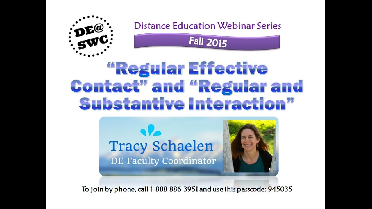 Regular Substantive Interaction In Practice On Demand Webinar After reading the statement above, is there any reason that regular and substantive contact cannot be maintained? if yes, briefly explain the problem and how that problem is resolved in the regular face to face class. Institutions are expected to ensure regular and substantive interaction between students and instructors in their distance education offerings. qm standard 3.5 the types and timing of assessments provide learners with multiple opportunities to track their learning progress with timely feedback. The u.s. department of education now requires that all online courses for which students may use title iv funds (federal financial aid) "ensure that there is regular and substantive interaction between students and faculty.". One way to be sure that your online course includes regular and substantive interaction is to have a colleague observe the course and then provide you with detailed, constructive feedback.